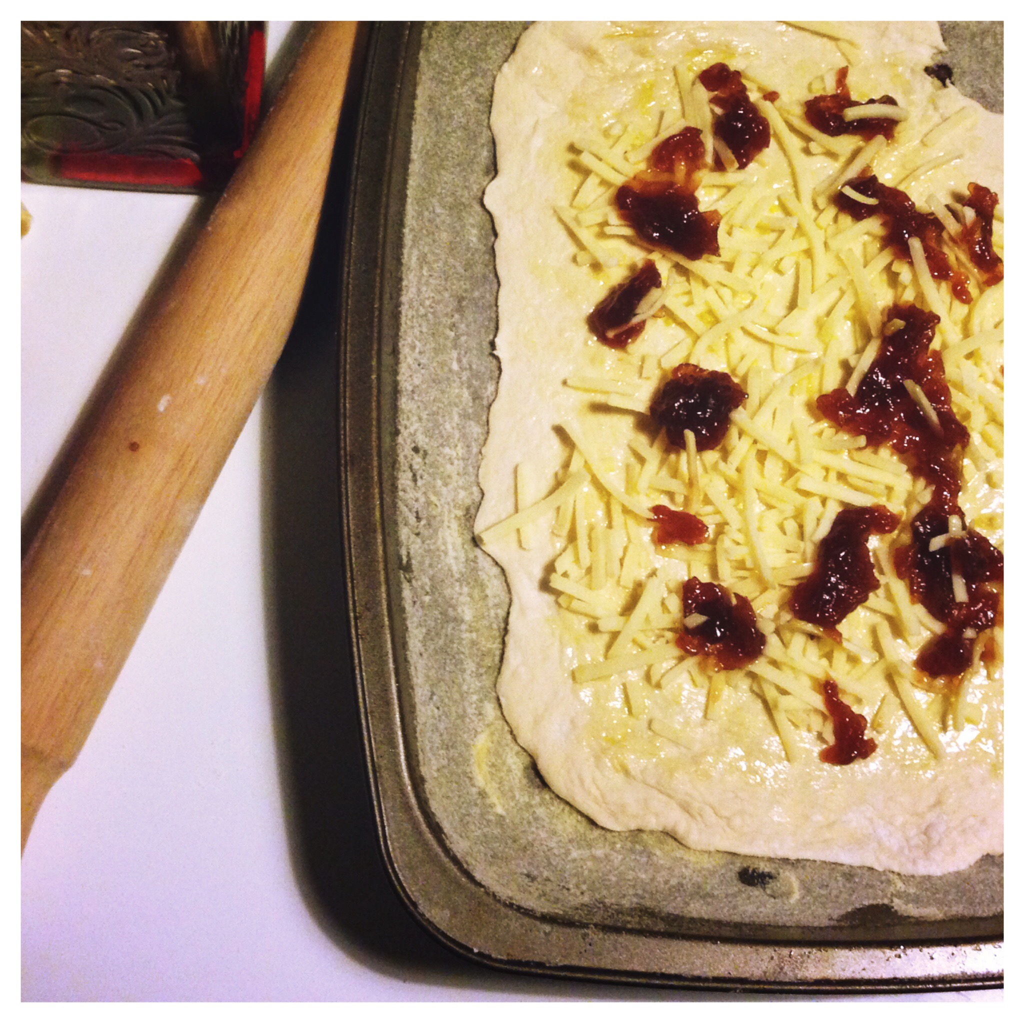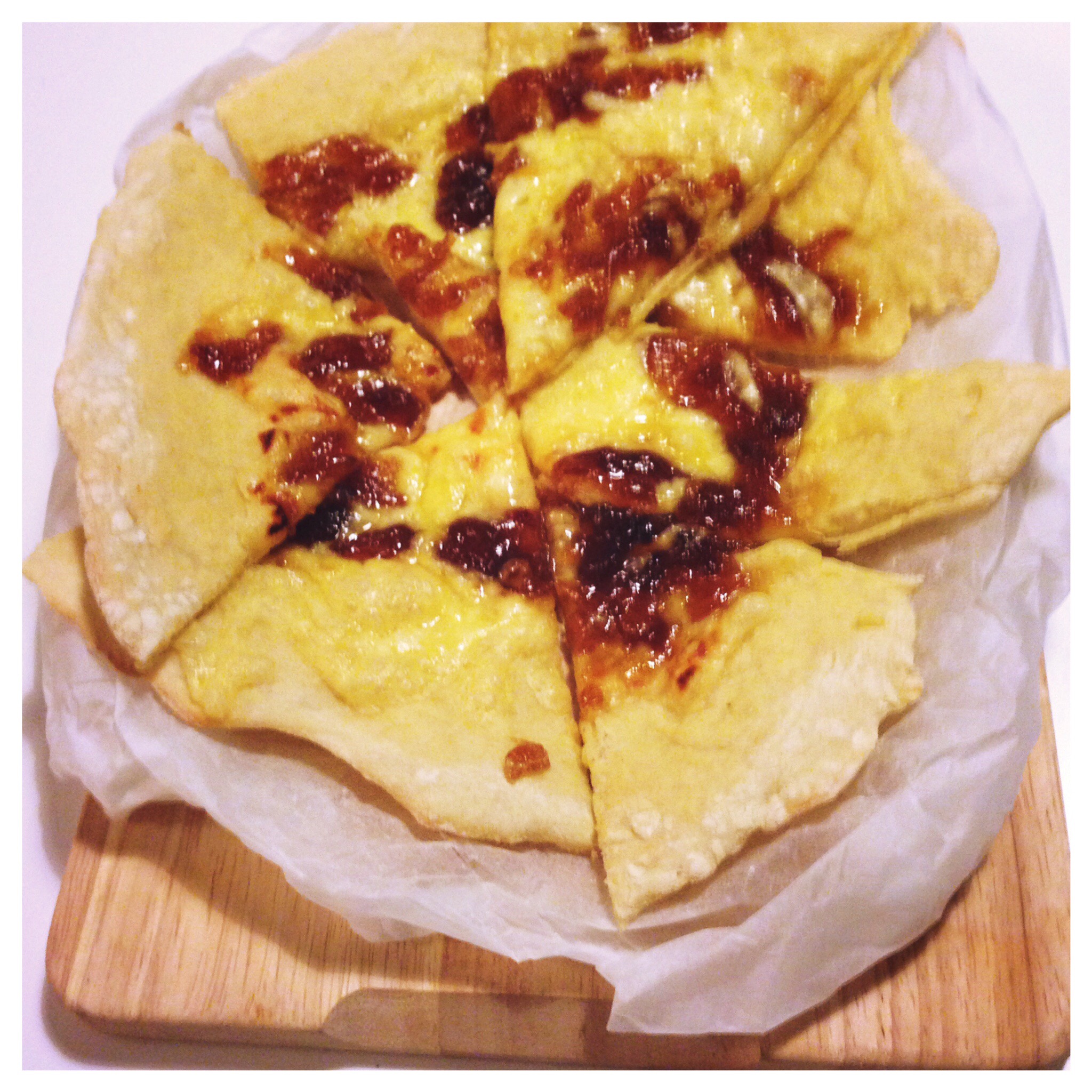 So a little bit more about this recipe. You don’t need to much cheese as this should be just enough to accompany the chutney and garlic. In Zizzis they use buffalo mozzarella but it makes it a little bit too wet so I used cheddar instead. Another secret to achieving this grainy texture is semolina. I suppose the reason why Dominoe’s pizza tastes so good is nothing else but Semolina!!! It’s not very easy to find the only place I have found it was in Waitrose and it cost only £1 for 500g bag. Do not make the same mistake as I did and use Bird’s semolina that you can get in the pudding isle of your supermarket. It is sweetened even though packaging suggests to use it for roast potatoes I suggest go plain!