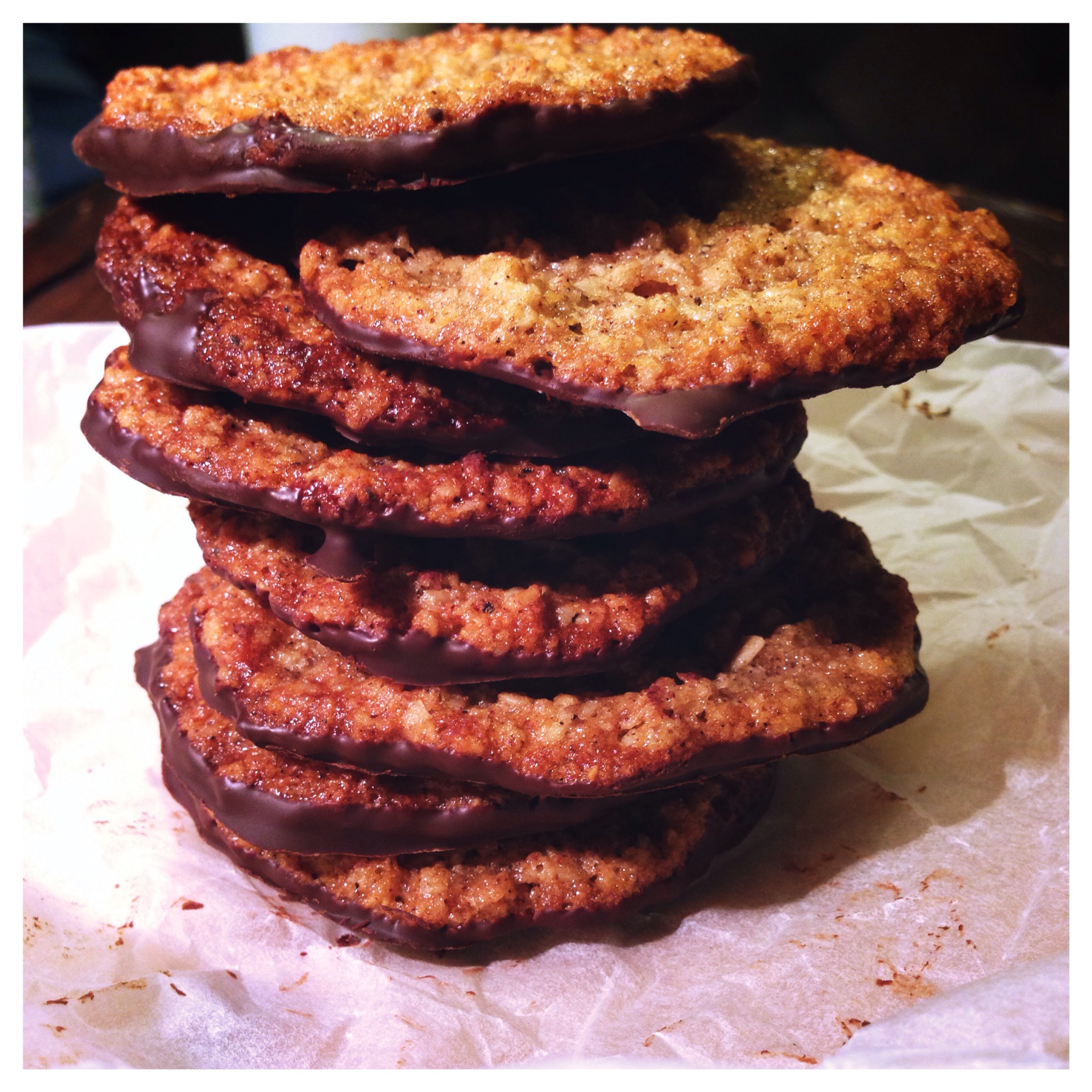 I’m bringing you Havreflarn. Delicious crunchy, oatmeal cookies all the way from Sweden that will blow your tastebuds with their texture. If you haven’t tried them in ikea yet, this recipe is definitely for you. If you have tried them it’s also for you because now you can make them at home. My version of this recipe has a twist. Standard recipe includes cinnamon but in my version we are also adding black pepper. The flavours work perfectly. I know some of you could be a bit reluctant to pepper in cookies but it’s not there to make you sneeze or overpower the taste. It adds this subtle spicy taste to the sweetness of the cookies. What’s more it brings out the flavour of chocolate coating 10 times more. The spicy-cinnamony flavour tastes great with crispy texture covered by rich chocolate. I hope you will enjoy them as much as I did!!
