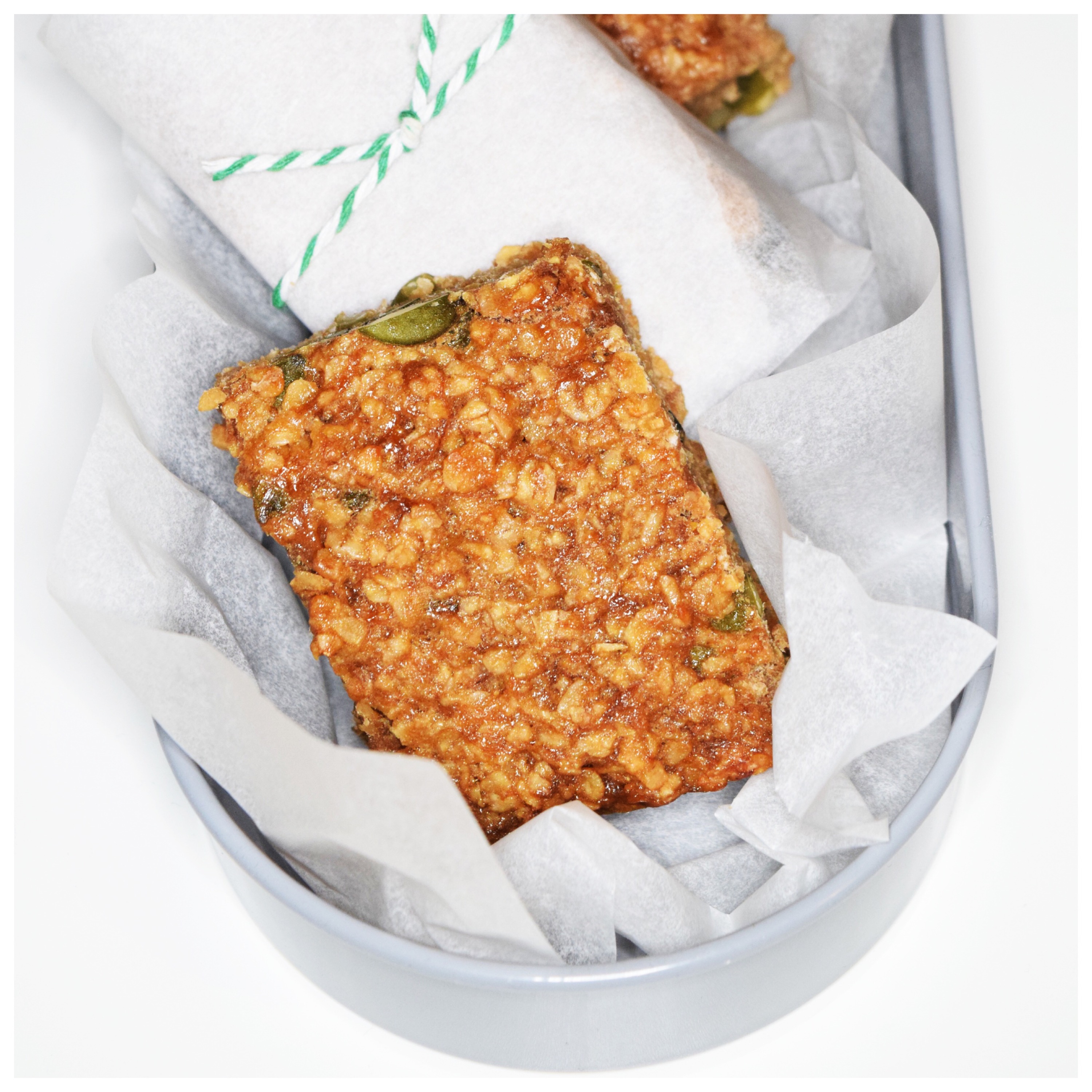 What I love about making flapjacks is that they are quick to make and pretty much everything happens in one pot. You can easily take them for a snack to work too. With the batch I made I added some pumpkin seeds but I really wanted to add some rum presoaked raisins. Unfortunately it didn’t happen because I was taking them for a party and the host hates raisins. It would make a perfect addition however flapjack tastes great without them too.