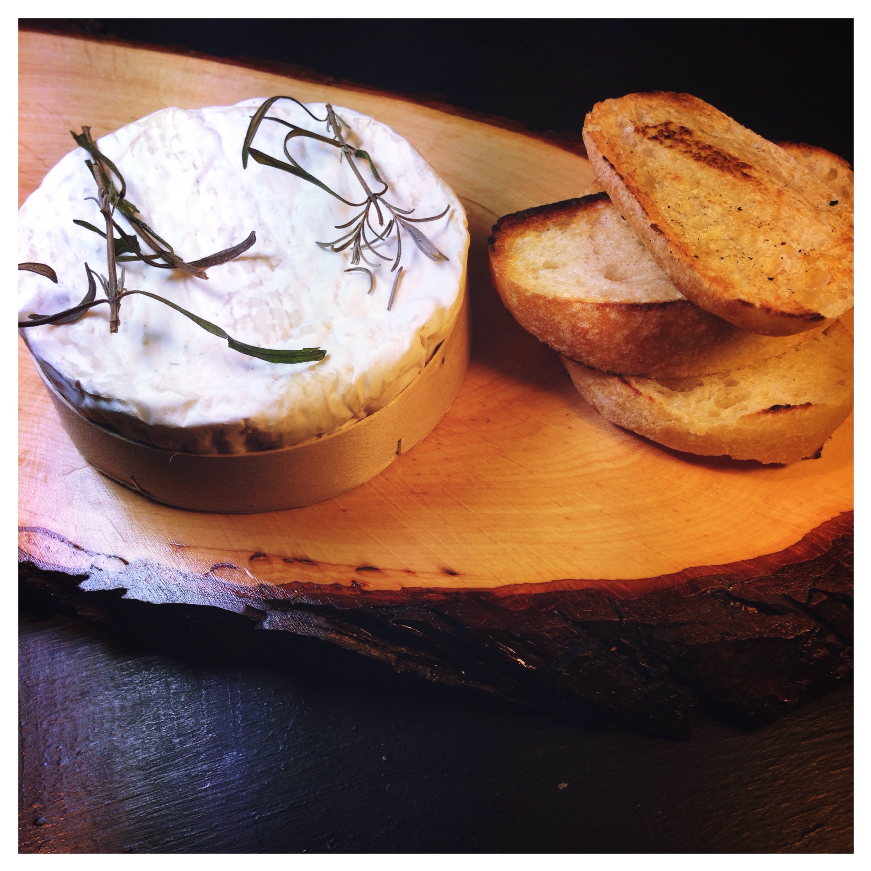 Rosemary baked Camembert cheese with selection of warm bread to share