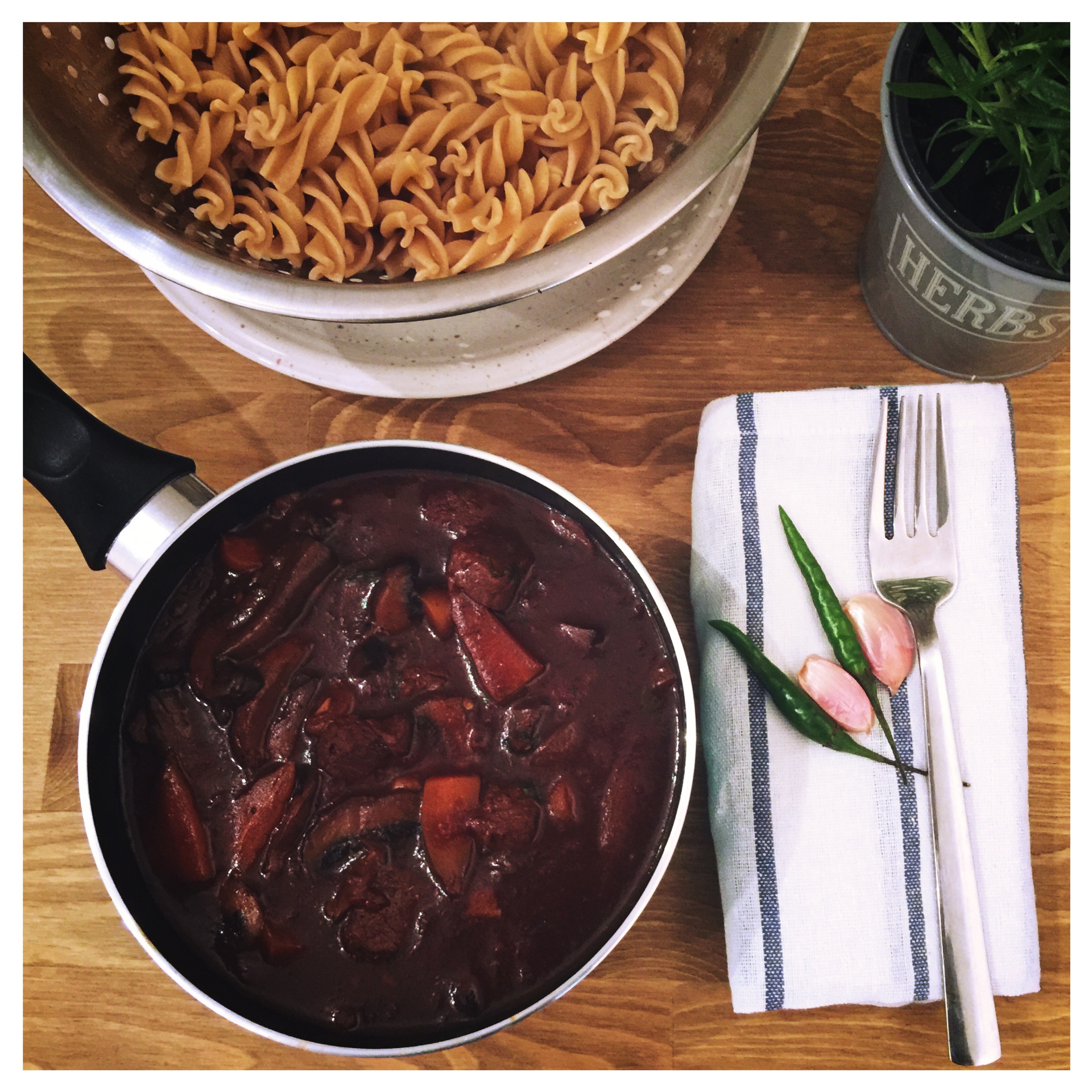So as it begins to look very grim outside (and in Manchester it rains all the time) there is nothing better than a nice warming dish accompanied by a large glass of vino. This particular one as if by magic happens to cook itself all in one pot so there is hardly any washing up to do post wine.