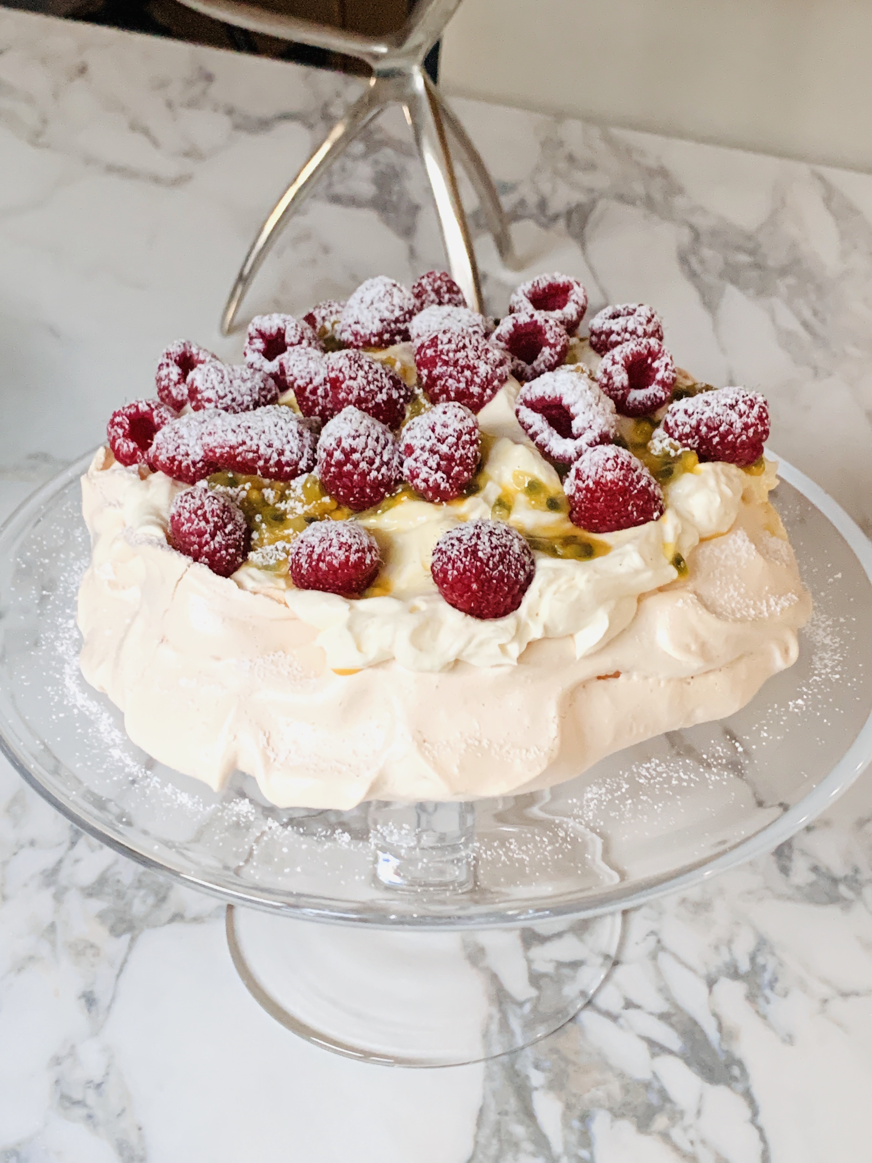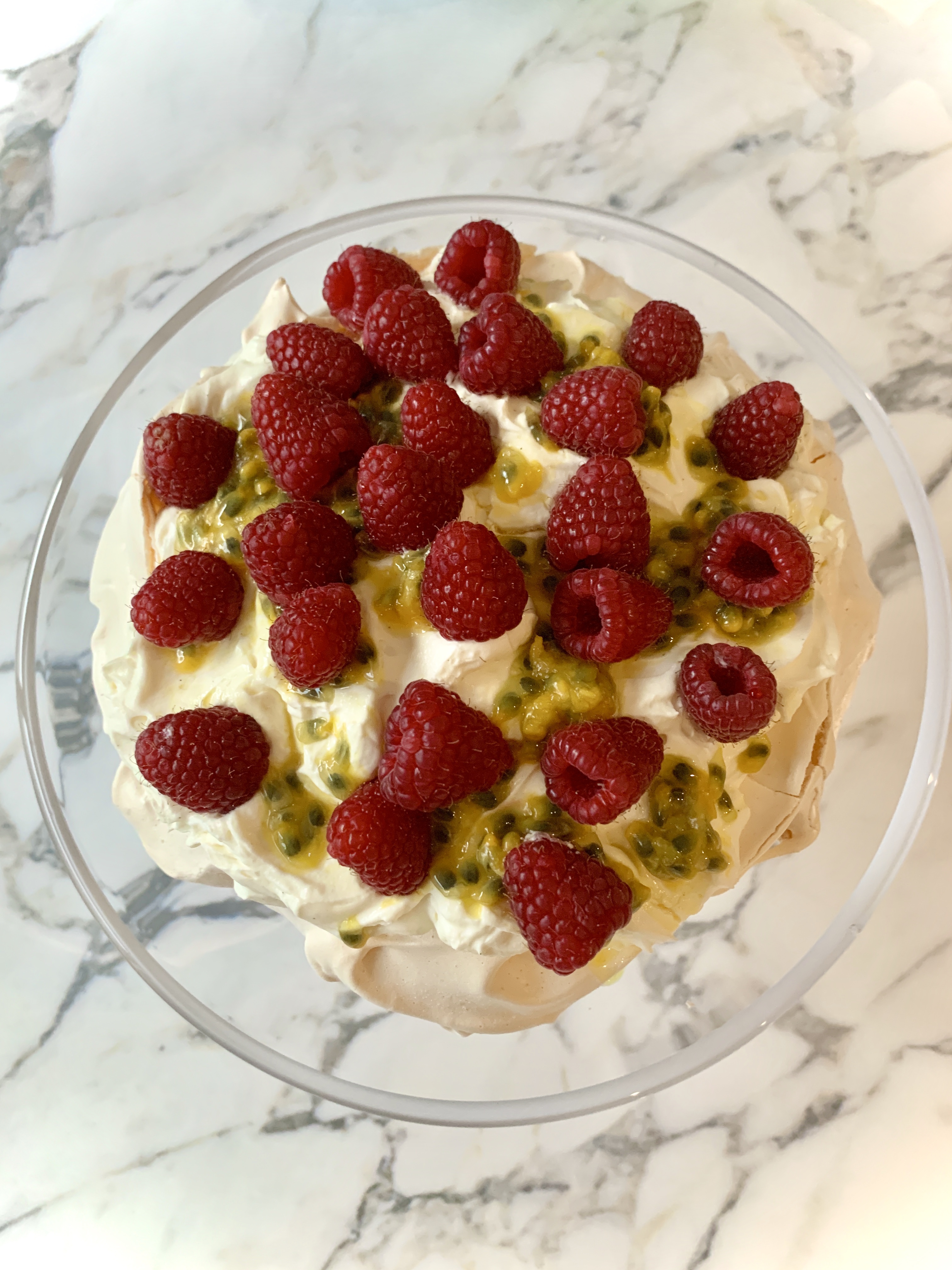 My favourite version of pavlova is simply cream (I do have a secret twist that will be revealed in the recipe to make it lighter than your usual whipped cream) and fresh fruit with certain level of acidity to balance the sweetness of the meringue. I have decorated it for Easter in the past with chocolate eggs but as nice as it looked, it was just too sweet! On this occasion I’m using two of my favourite fruits passionfruit and raspberries as they are the perfect balance to the sweetness of the rest of the dessert. Ok so let’s get to it!!!