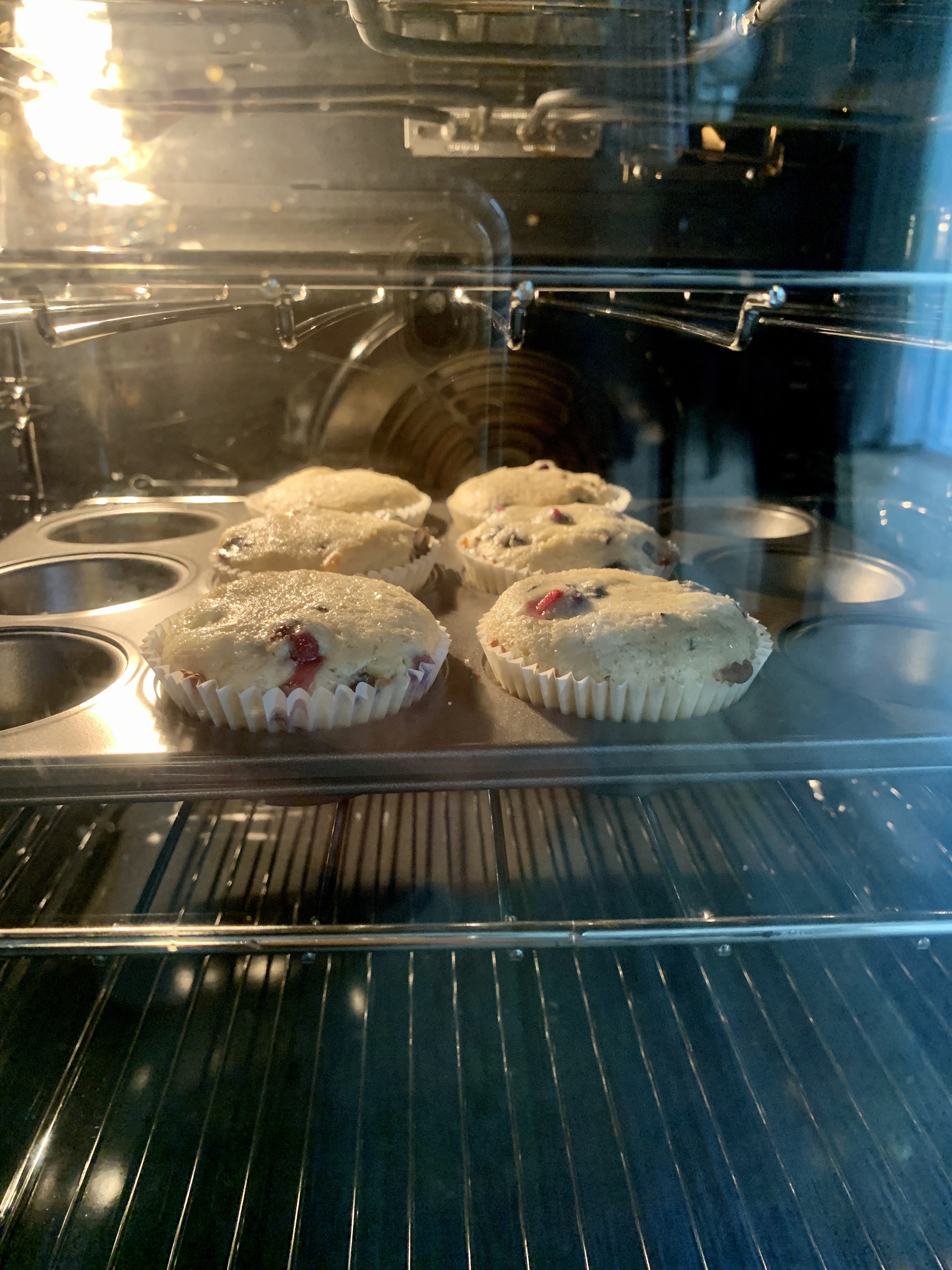 - Remove the muffins from the oven and after about 5 minutes transfer them to a rack to cool.